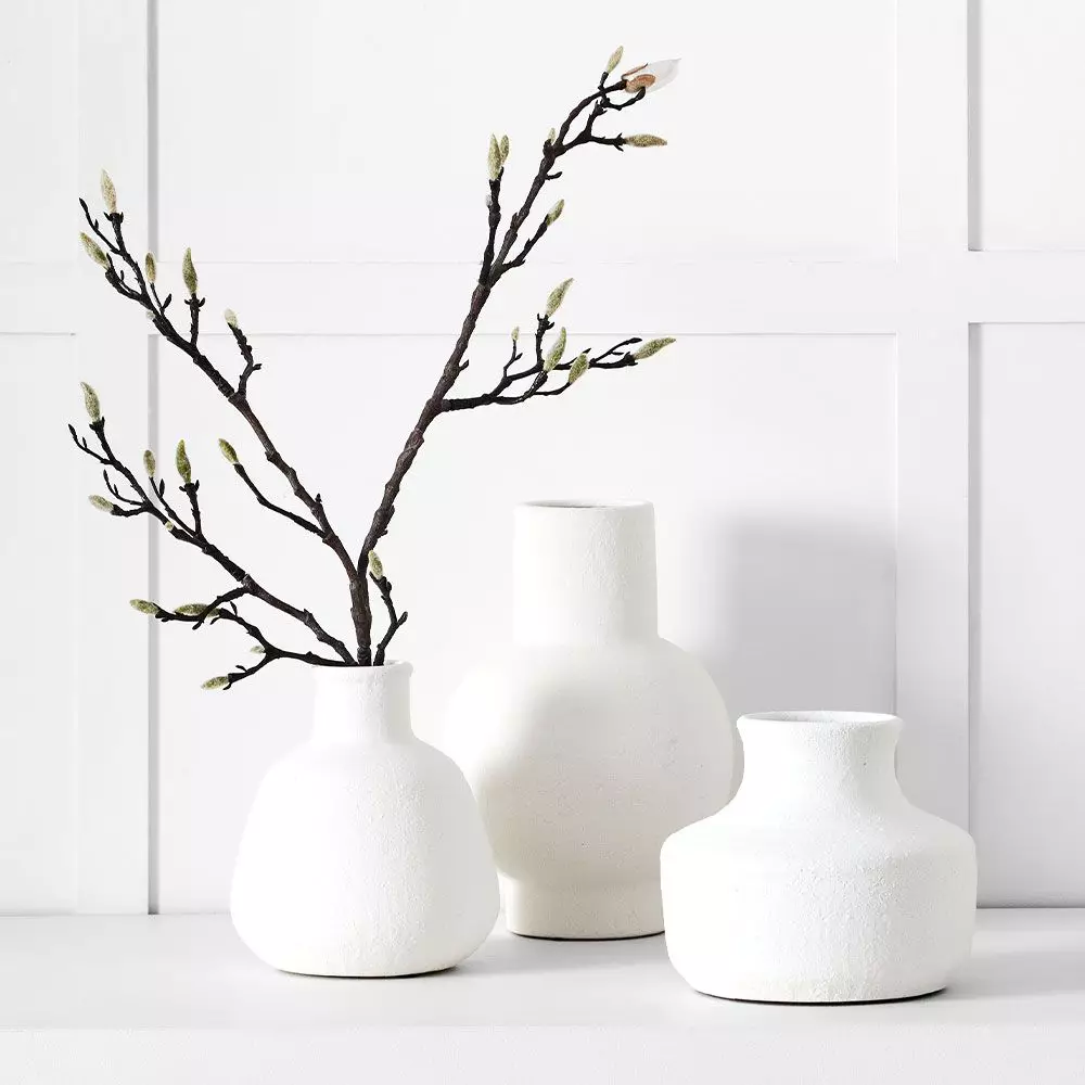 White ornaments always look good and this terracotta vase with a soft white finish will look beautiful by itself or grouped with other pieces from the range. For decorative use only, not water tight.