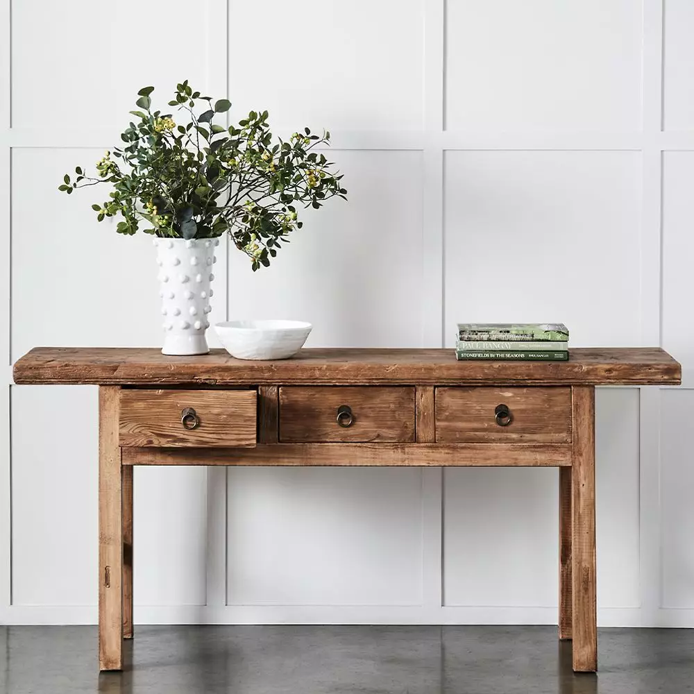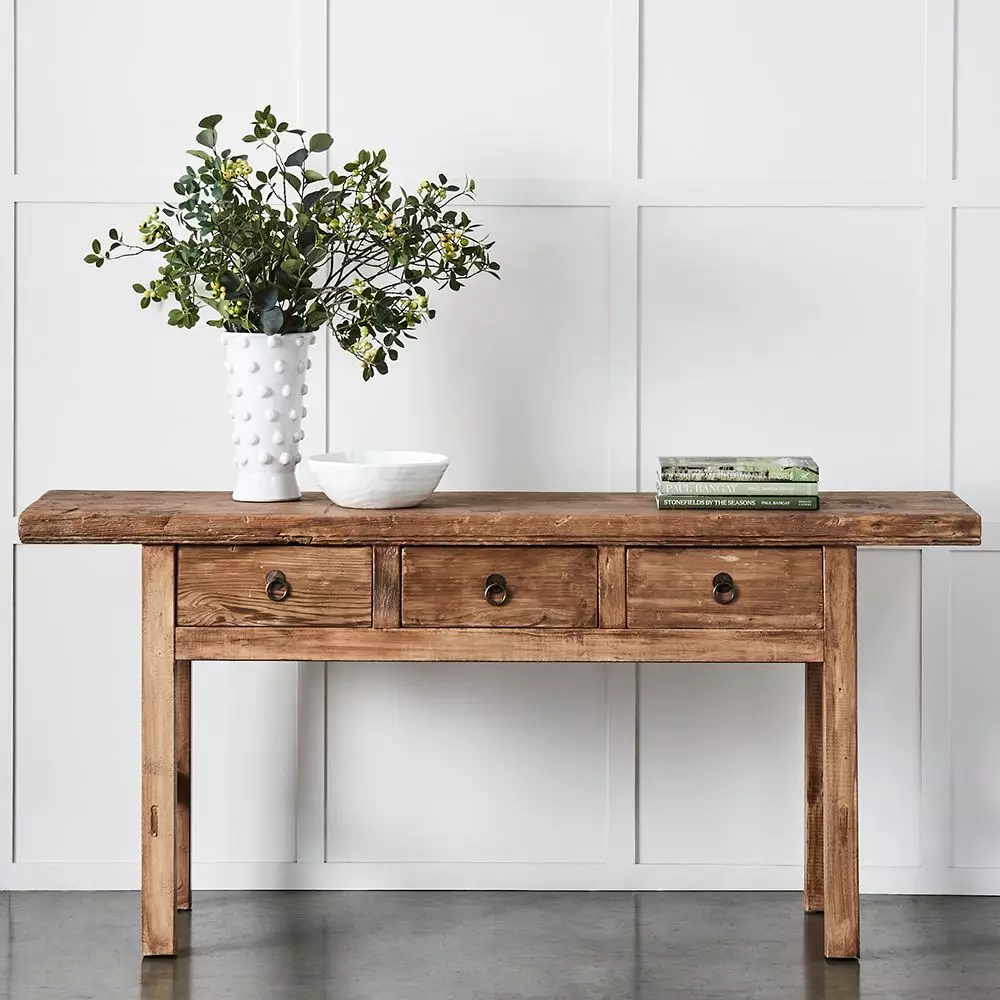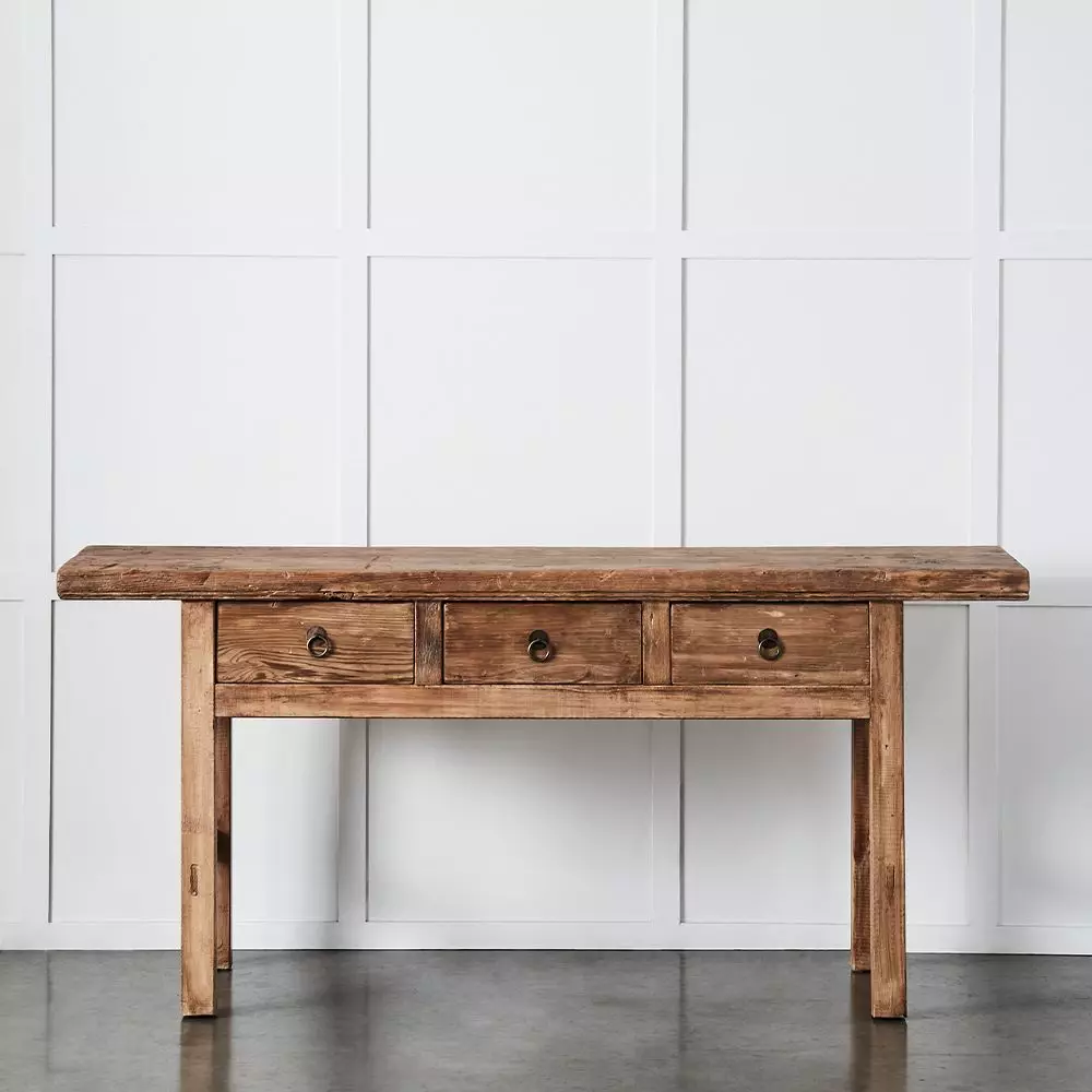 Our antique Albany console tables are sourced for us in the provinces of China where some started their lives as butcher’s tables. Invite one into your home and use it as a console table in the hallway, the living room or dining room. Each piece is unique with the beautiful hues and patinas of the elm timber echoing previous lives in centuries past. Sizes vary as each piece is unique.