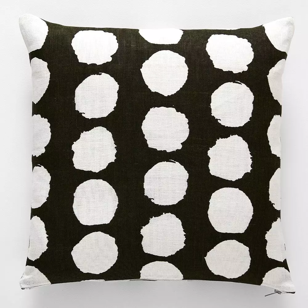 A stylish linen cushion with a circle block print pattern. Mix it with other patterned or plain cushions for maxium impact.