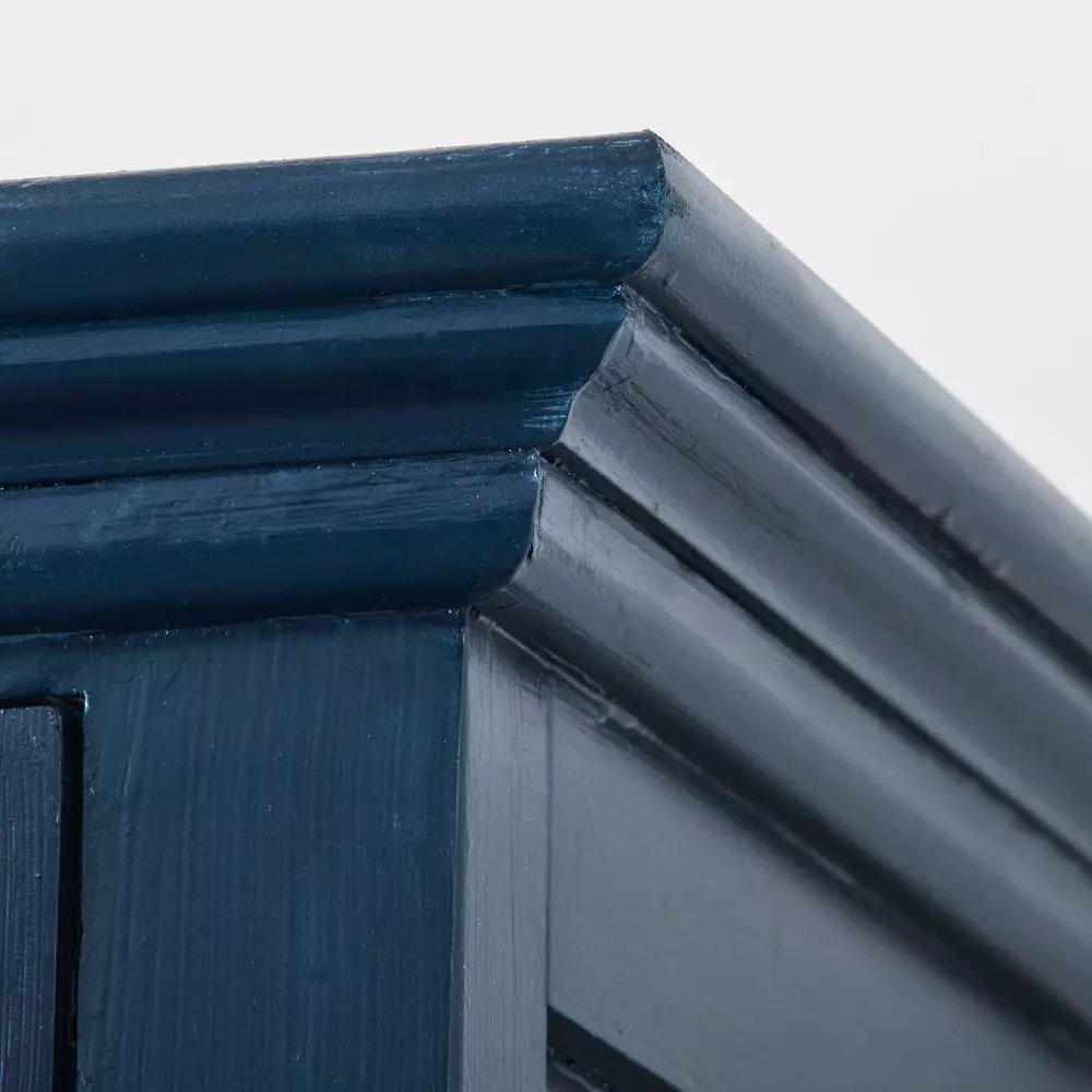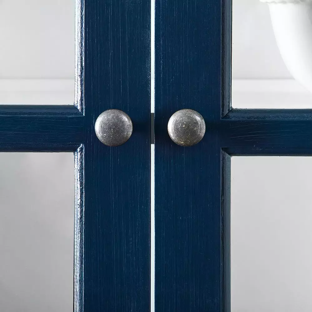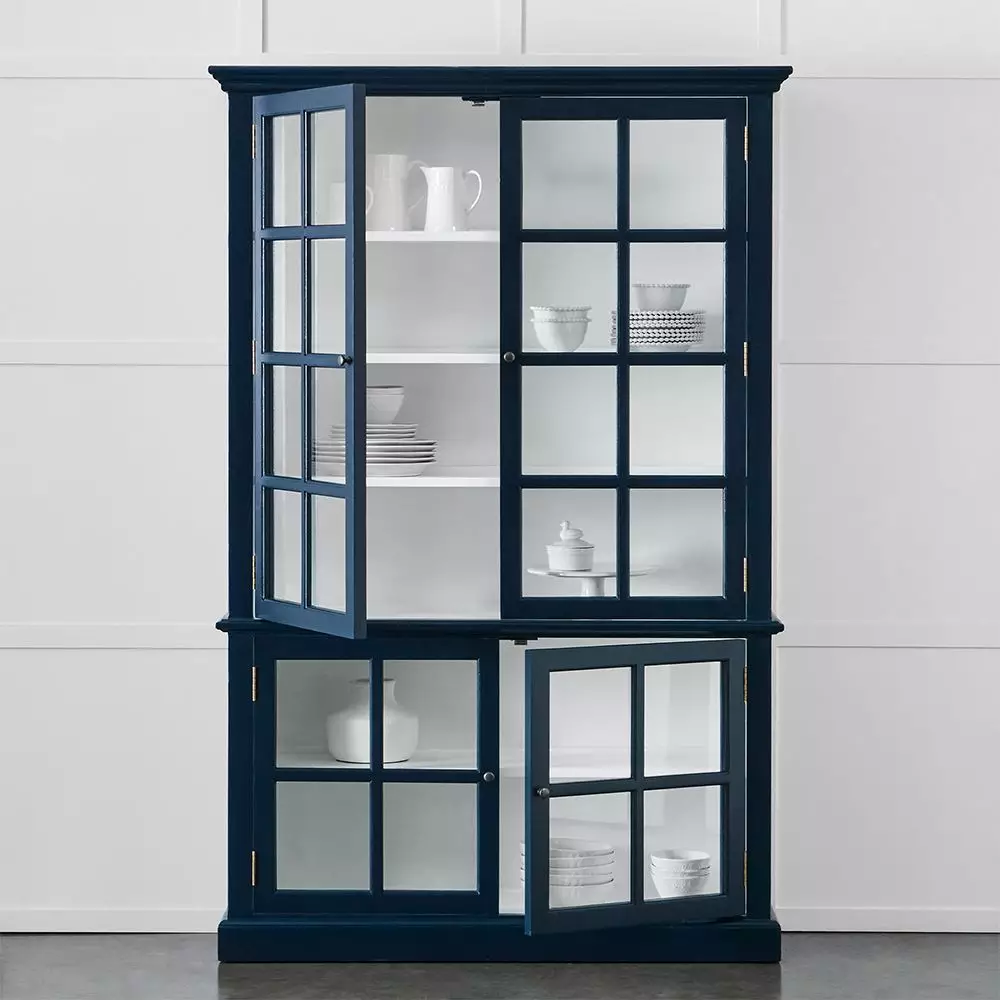Painted furniture can make a statement and transform a room and the Archibald Cabinet will certainly do that. It is beautifully crafted from reclaimed elm and painted a glorious blue on the outside with a crisp white interior. For added interest the brush strokes are a feature of the cabinet. 4 paned glass doors frame and display your treasures while keeping them safe, and shelves can be removed to accommodate large items.