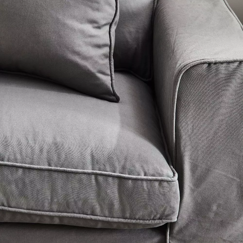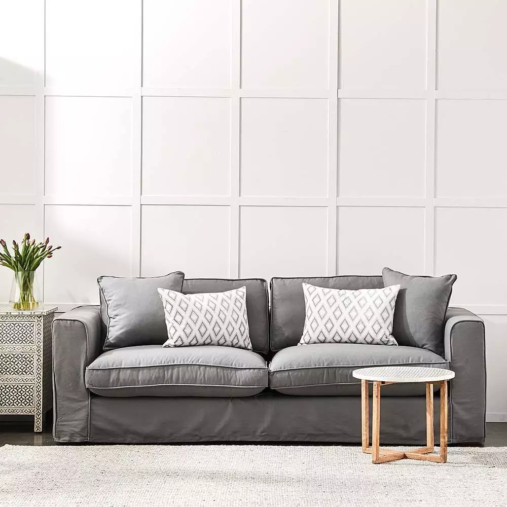 A classic style sofa with removable slipcovers in a timeless steel grey fabric which is a great neutral backdrop Two matching throw cushions are included. Add some scatter cushions in the colour of your choice – change them seasonally for an easy and reasonably priced update. This sofa will suit any room or colour scheme.