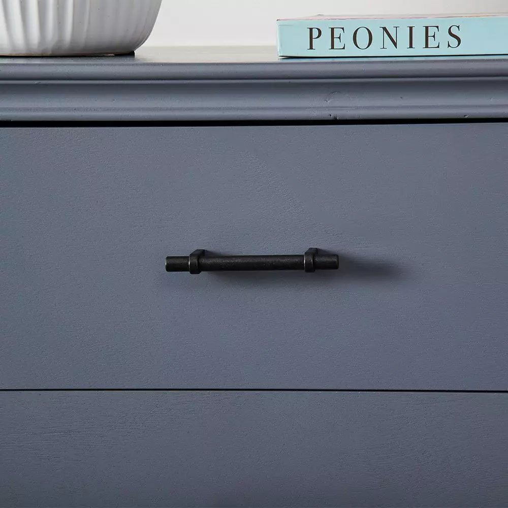 The Finn bedside table bridges the gap between traditional and modern and so fits into any decor style. Crafted from pine with a soft wash finish in charcoal that allows some of the grain to be visible. The modern square shape is softened with a rounded treatment of the legs. The three ample drawers are finished with unobtrusive flat drawer pulls.