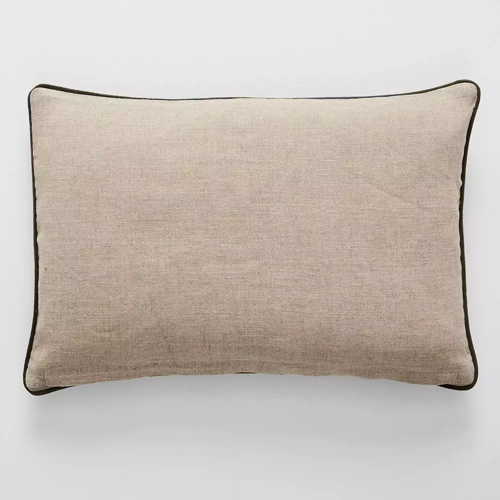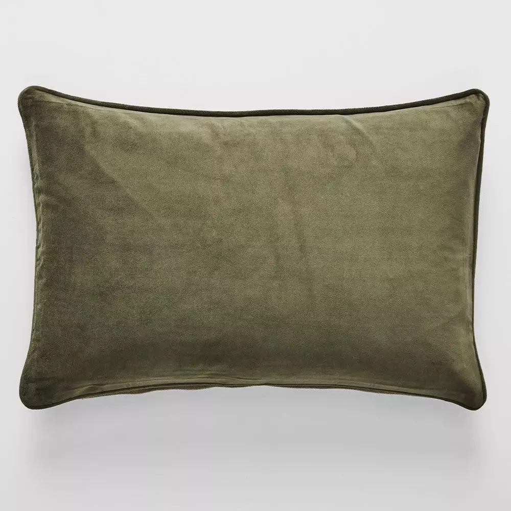 A beautiful forest green velvet cushion with a plain natural Indian cotton reverse. A luxurious feather insert completes the cushion.