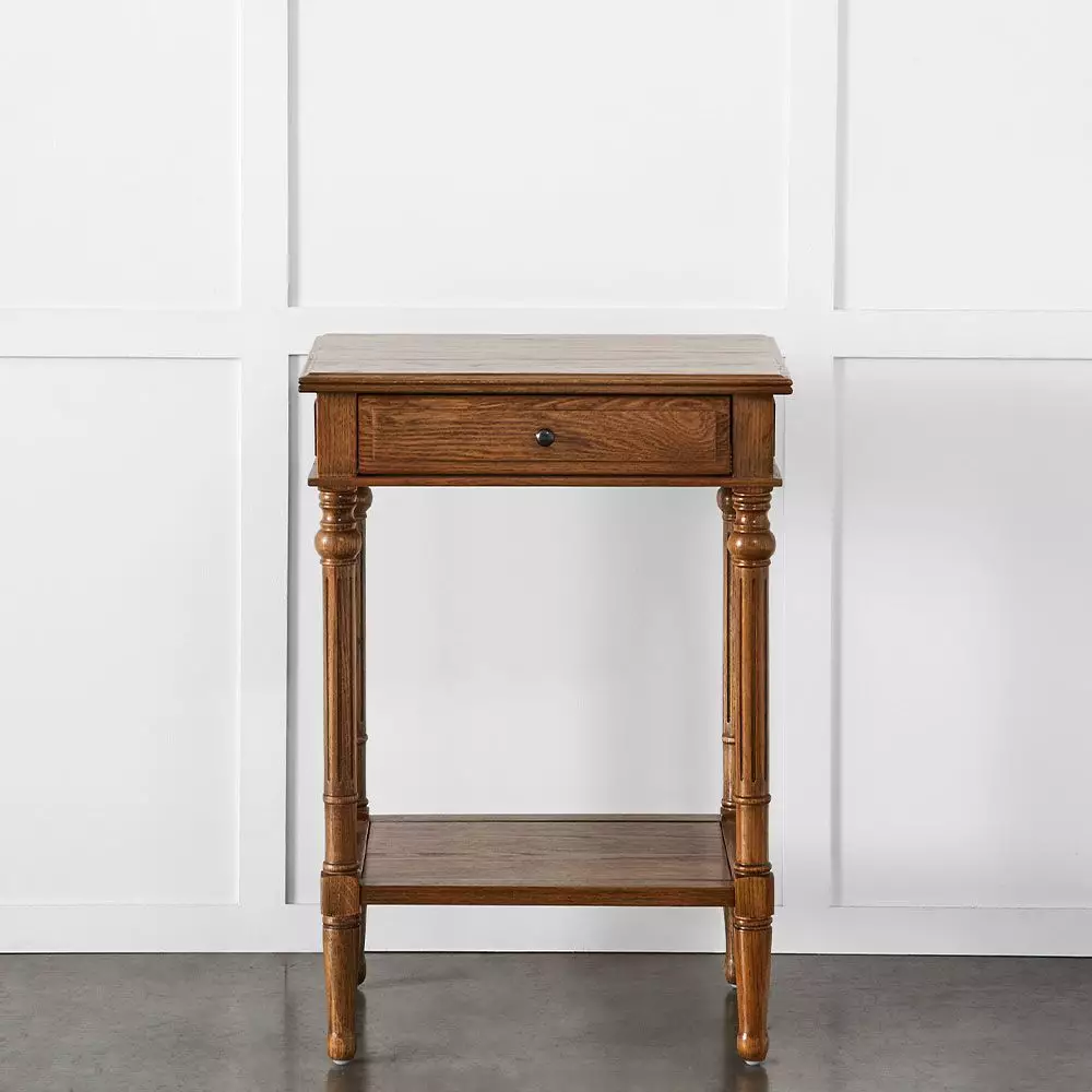 The Keswick bedside can only be described as elegant. All the elements – the carved legs, detailing on the sides, a handy drawer, a shelf for reading material and the unique wood grain of the oak timber combine to make this a standout piece of furniture.