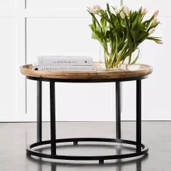 This Kingston range is simple, yet stylish with the combination of sustainable mango wood and black iron. The tray top and the circular iron on the base add interest to the design. The“see through” nature of the design makes them perfect for smaller spaces as they appear to float and take up less space. Crafted in India.