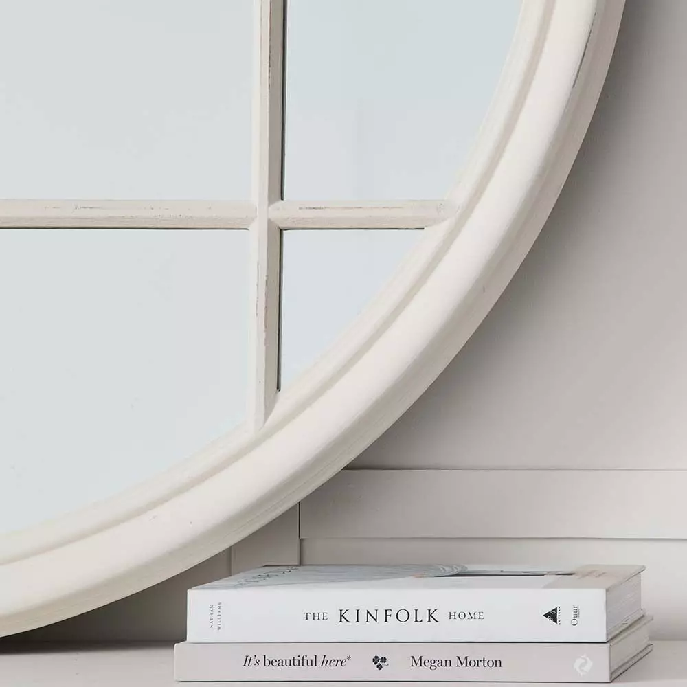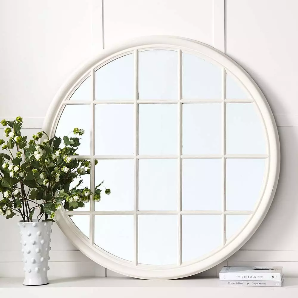This Magnifique round mirror is inspired by the galley of a turn of the century ship. Position it above a fireplace to create a focal poin, at the end of a hallway or entrance above a console.