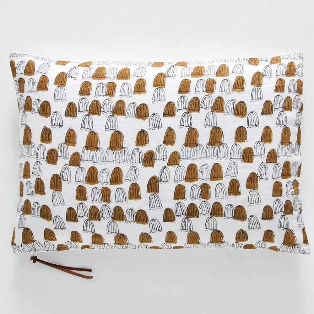 A beautiful block printed cushion on Indian linen in subtle hues. The cusion cover is printed on one side and plain on the other for added versatility. Stunning on its own or mix and match with other patterned or plain cushions.