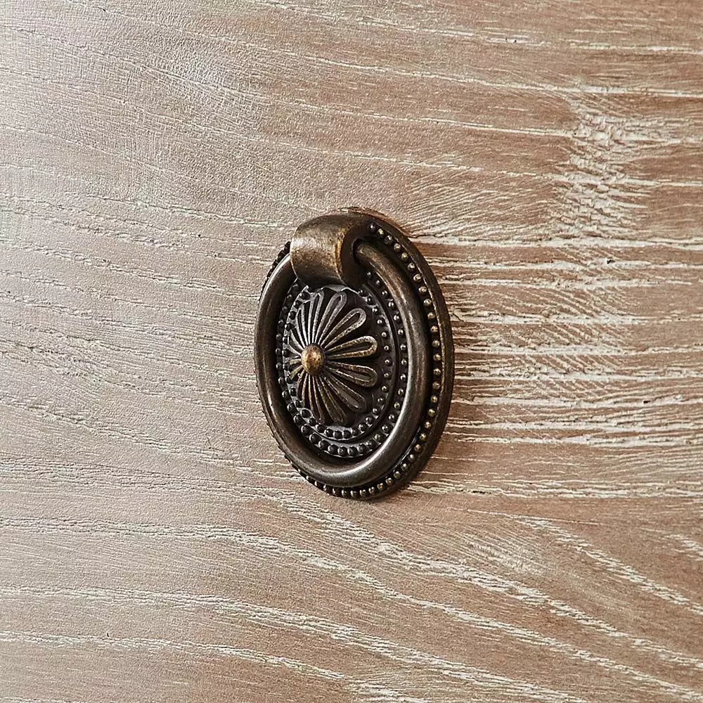 The Montrose has a curved front and slightly rounded edges on the top of the double chest, lovely detailing on the legs and elegant metal ring pulls on the eight drawers – all combine to create a charming piece of furniture. Crafted from reclaimed elm and fir.