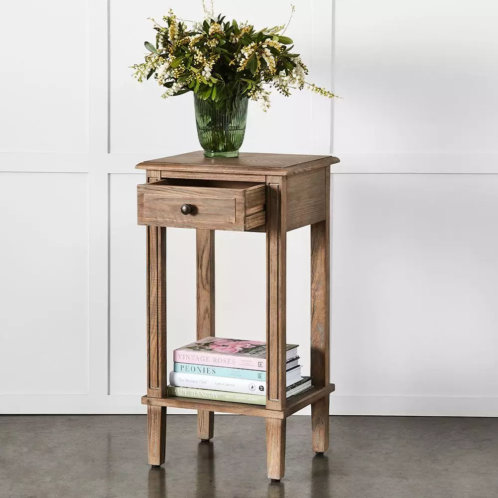 Newman is a casually elegant bedside. Although a compact size, with a drawer and a shelf, it has ample room for hiding away items, keeping bedtime reading handy and room for a bedside lamp. There is minimal detailing as the lovely grain of the ashwood is all it needs.