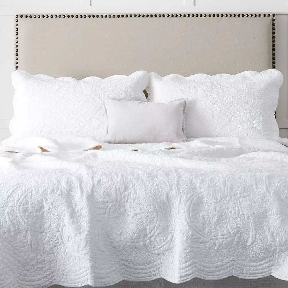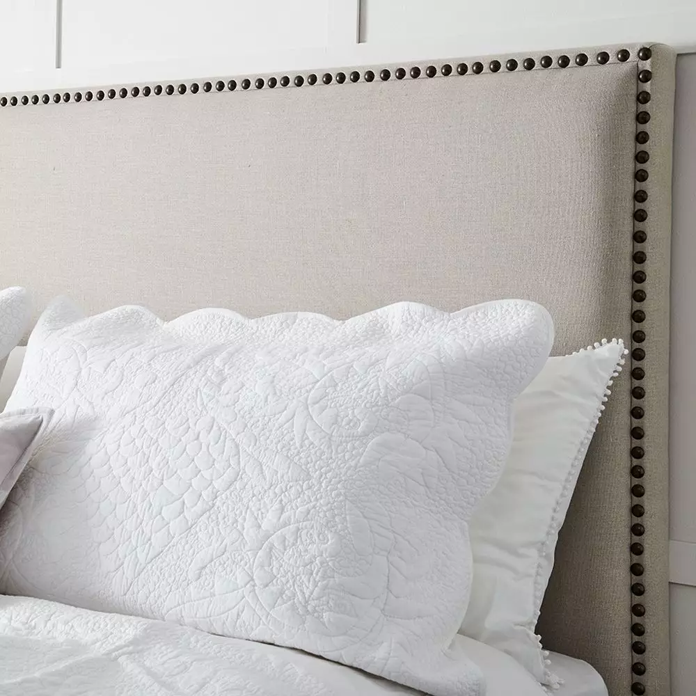 The classic Robe bedhead is upholstered in a beautiful natural linen. The elegant brass studding is a lovely detail to draw the eye to the bedhead. Any bedding colour will look beautiful with the natural linen so you can enjoy the bedhead for may years with just a change of quilt covers.
