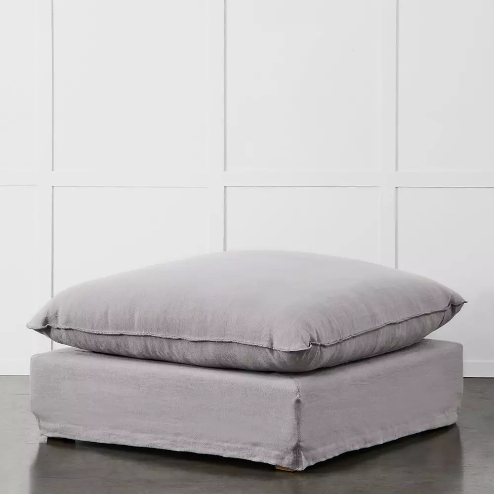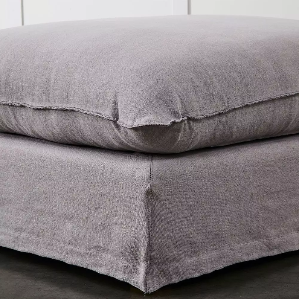 Pair our fabulous new Sorrento ottoman with our Sorrento sofa or armchair, pop your feet up and they become even more comfortable. Covered in linen, with overlocking detail on the top cushion to match the other pieces. Both the cushion cover and the base cover are removable for professional cleaning, making it even handier