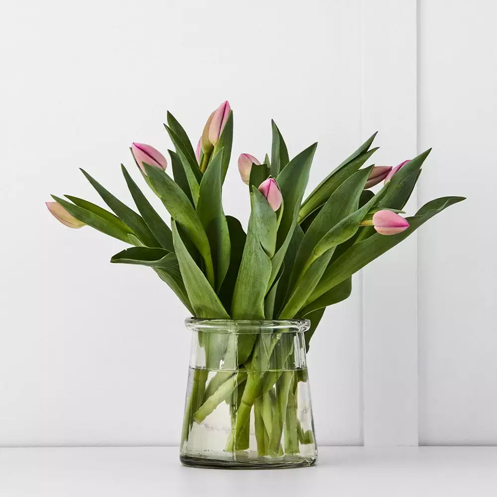 A lovely glass vase with a lip – fill it with flowers or foliage.