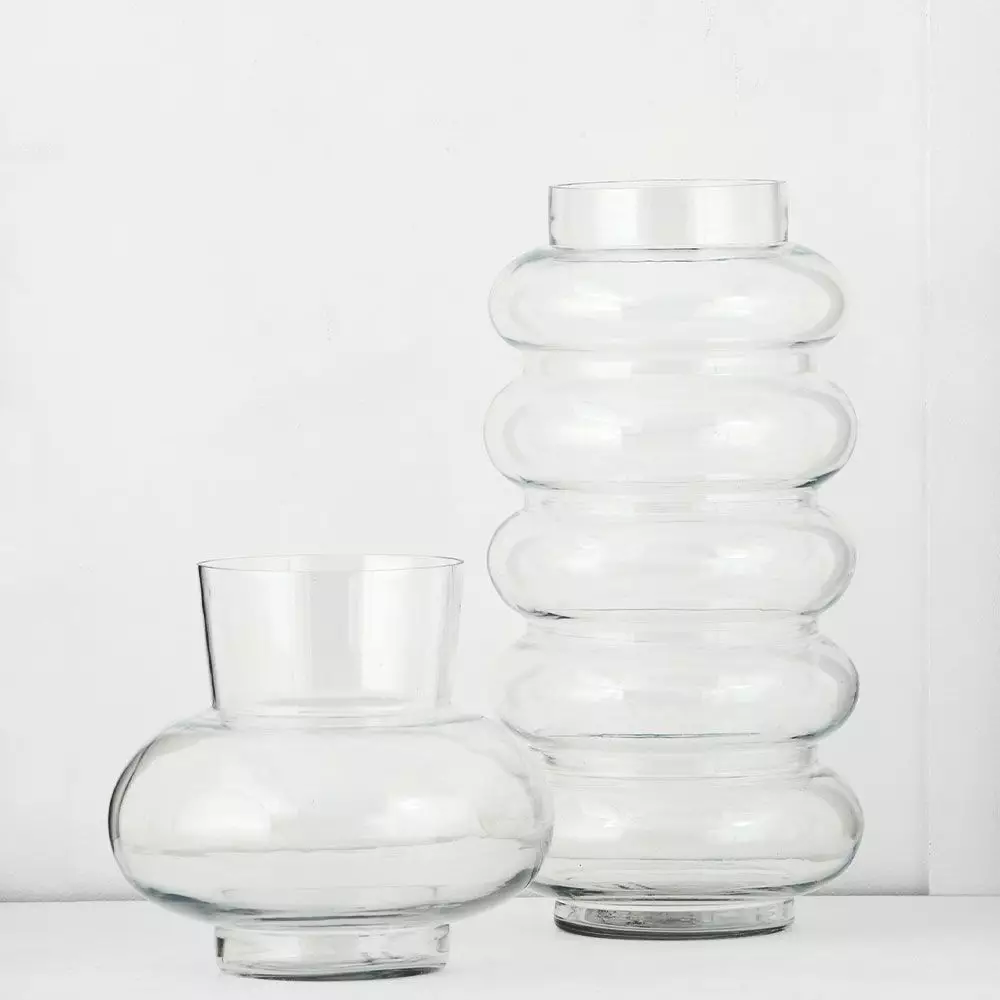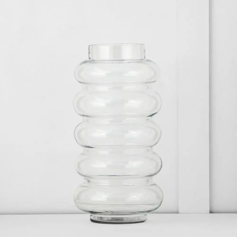 A tall, very elegant vase which is pretty enough to leave on display even without flowers.